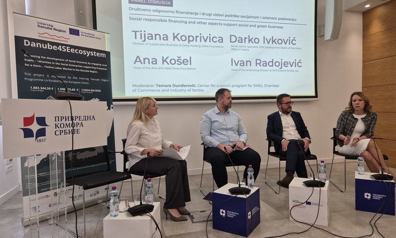 در تاریخ ۲۲ اکتبر ۲۰۲۵، نه کشور از منطقه دانوب در کنفرانس «گفتوگوی یادگیری سیاستی» که به ابتکار مرکز برنامههای حمایت از اقتصاد و MMSPD اتاق بازرگانی صربستان در چارچوب پروژه Danube4SEecosystem برگزار شد، شرکت کردند. هدف این کنفرانس، تدوین توصیههایی برای بهبود چارچوبهای قانونی و نهادی توسعه اقتصاد اجتماعی، تبادل تجربیات و معرفی مدلهای موفق قابل تطبیق با شرایط محلی بود. در آغاز نشست، فعالیتهای انجامشده و برنامههای آتی برای پیشرفت اقتصاد اجتماعی در صربستان ارائه شد. از سخنرانان این بخش میتوان به جورجه ژیوانویچ، مشاور رئیس اتاق بازرگانی صربستان، اولیورا یوویچ، معاون وزیر کار و امور اجتماعی، و الکساندرا کریستیچ یوویچ، مشاور وزیر امور برابری جنسیتی اشاره کرد. در این کنفرانس نمایندگانی از دولتهای ملی و محلی، بخشهای مالی، اقتصادی و اجتماعی، و همچنین شرکای پروژه از کشورهای رومانی، جمهوری چک، اسلواکی، مجارستان، اتریش، جمهوری صربسکا، اسلوونی و کرواسی حضور داشتند. همچنین نمایشگاه کوچکی از محصولات و خدمات بنگاههای اجتماعی مانند «بایو آیدیا توسعه پایدار»، «کاریتاس شاباتس»، «انجمن داون کراگویواتس»، «مزرعه سبز ایوا» و «سازمان خیریه قلب کودک» برگزار شد.در پنل نخست با عنوان «تأمین مالی مسئولانه اجتماعی و سایر اشکال حمایت از کسبوکارهای اجتماعی و سبز» که با مدیریت تامارا دونجروویچ برگزار شد، نمایندگانی از بانک ERSTE، بنیاد دلتا و بانک توسعه KfW آلمان شرکت داشتند. موضوعاتی چون توازن میان اهداف تجاری و مسئولیت اجتماعی، برنامههای جدید تأمین مالی تأثیرگذار (Marc Impact) و اهمیت نهادهای مالی بینالمللی در حمایت از توسعه پایدار مورد بحث قرار گرفت. در بخش دوم، پنل با عنوان «شراکت بین مقامات محلی و بازیگران اقتصاد اجتماعی» برگزار شد. میلیکا پاویچ تأکید کرد که همکاری بین دولتهای محلی و بخش اقتصاد اجتماعی، کلید توسعه پایدار و فراگیر جوامع است. در این نشست نیز از تجربههای موفق شهرهای شاباتس و کراگویواتس سخن گفته شد. نمایندگان کشورهای شرکتکننده از جمهوری چک، اسلواکی و جمهوری صربسکا نیز تجربههای خود در توسعه سیاستهای اقتصاد اجتماعی ارائه کردند.در پایان، سه میزگرد تخصصی درباره اولویتهای توسعه اکوسیستم اقتصاد اجتماعی در منطقه دانوب، موانع موجود و گامهای لازم برای پیشرفت برگزار شد.